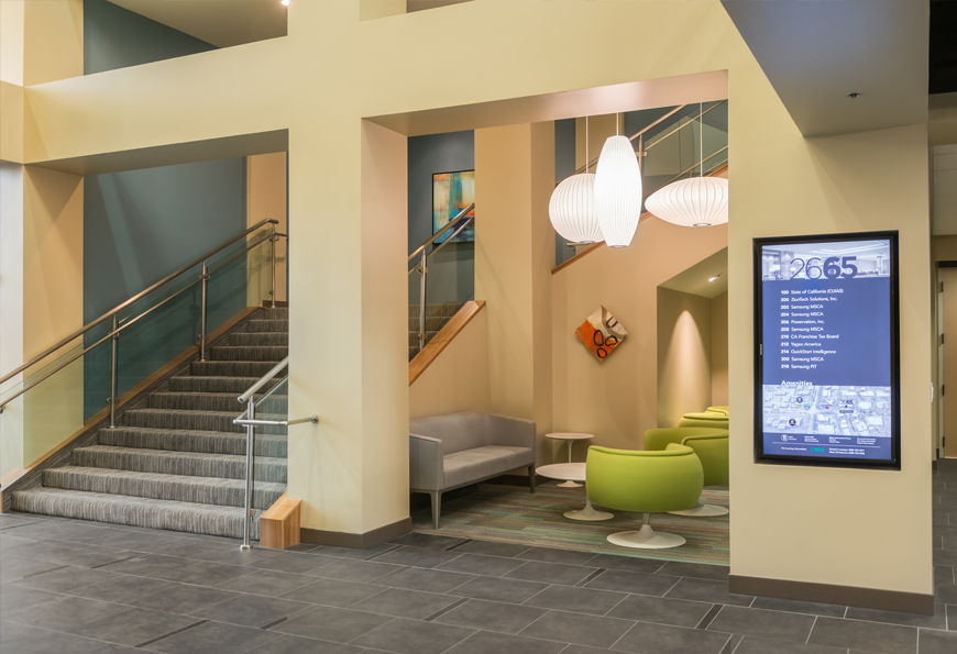2665 offers a soaring three-story lobby with foot bridges that connect the upper floors. All newly renovated suites provide for open floor plans and 11-foot open ceilings with pendant lighting and spiral ductwork. The unique 3rd floor suites offer ceilings as high as 25 feet with substantial skylights and generous amounts of natural light.